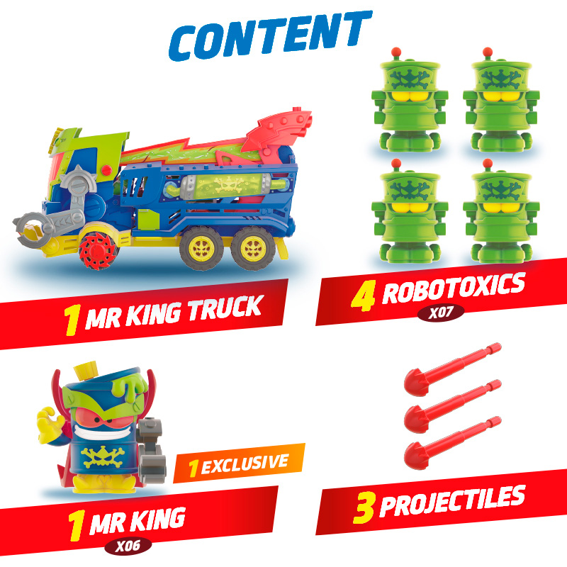 To duży pojazd Mr Kinga, który można transformować do ataku. Wyposażony w wyrzutnię pocisków, katapultę do wystrzeliwania Robototoksów i mechaniczne ramię do chwytania bohaterów. Wbudowane więzienie pozwoli zatrzymać złapanych bohaterów. Na tronie na szczycie pojazdu Mr King może nadzorować całą akcję. Pojazd mieści aż 12 nikczemnych SuperThings, gotowych na rozkazy swojego szefa. Cena tego imponującego zestawu będzie odpowiednia dla jego możliwości.