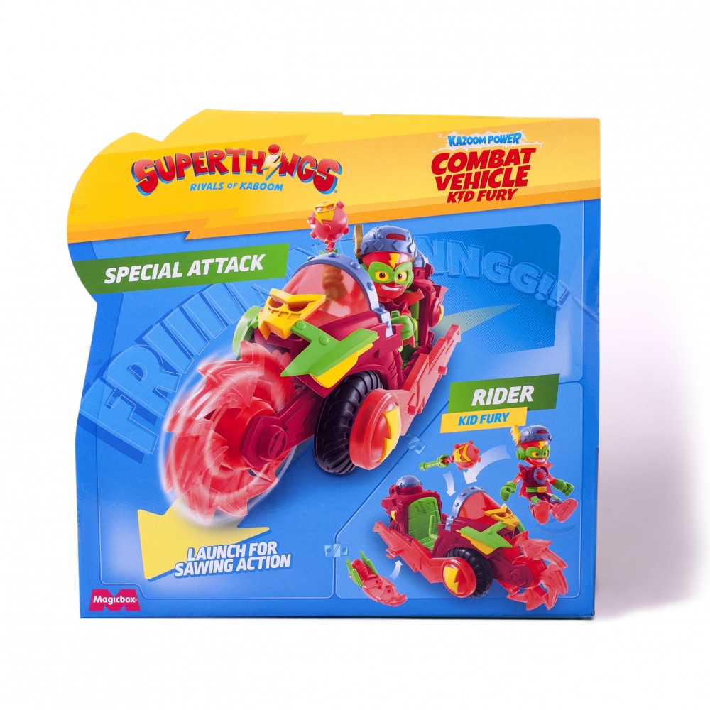 Nowość w serii to 3 różne Kazoom Power Combat Vehicles, czyli pojazdy Kid. Dostępne są pojazdy dla Kid Kazoom, Kid Fury oraz Multy. Każdy pojazd w zestawie zawiera dużą figurkę Kid’a oraz broń. To dynamiczne dodatki, które z pewnością wzbogacą każdą kolekcję.